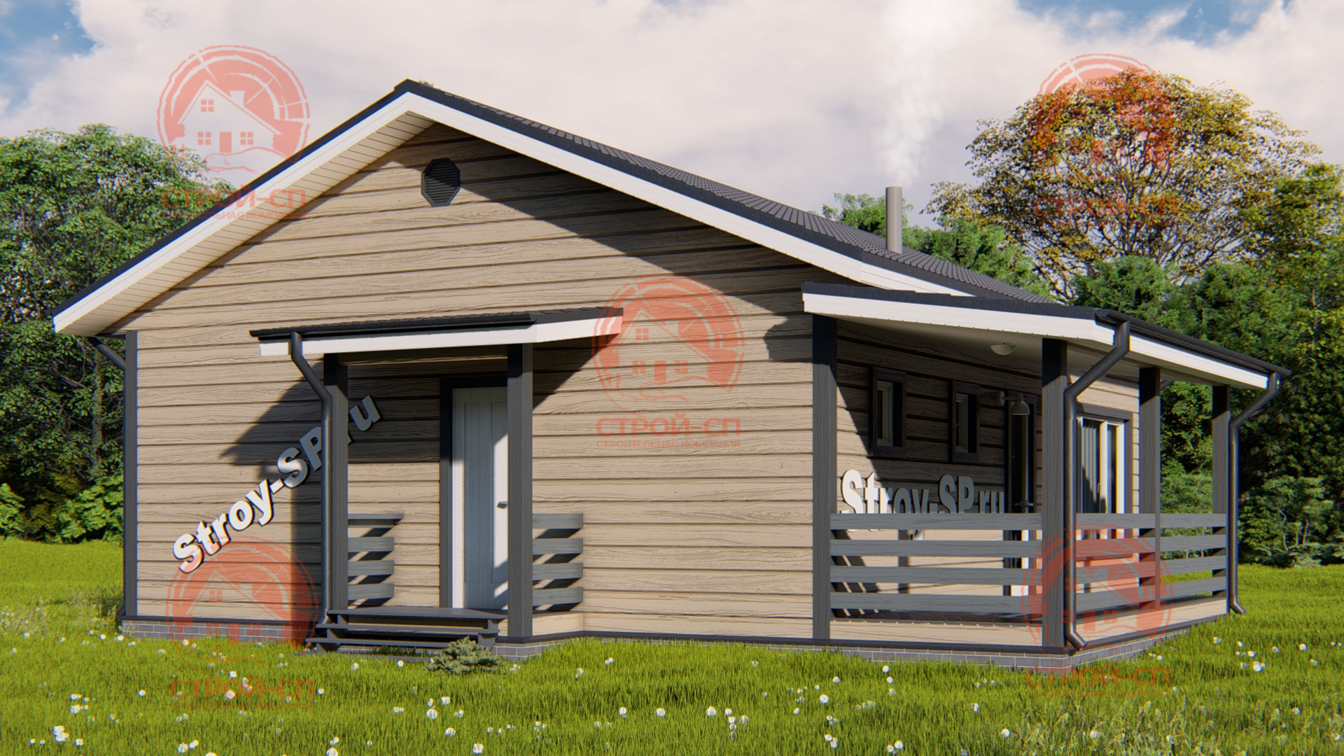 Шикарный проект деревянного одноэтажного дома «Лилия» учитывает все пожелания для комфортного проживания семьи из 3-4 человек. При компактном размере дома 10 на 8, на его территории удачно расположены и зона отдыха в виде террасы под отдельной кровлей, и сам дом, выполненный в классическом стиле с двускатной кровлей. Изюминка проекта: просторная светлая кухня-гостиная с панорамным остеклением.